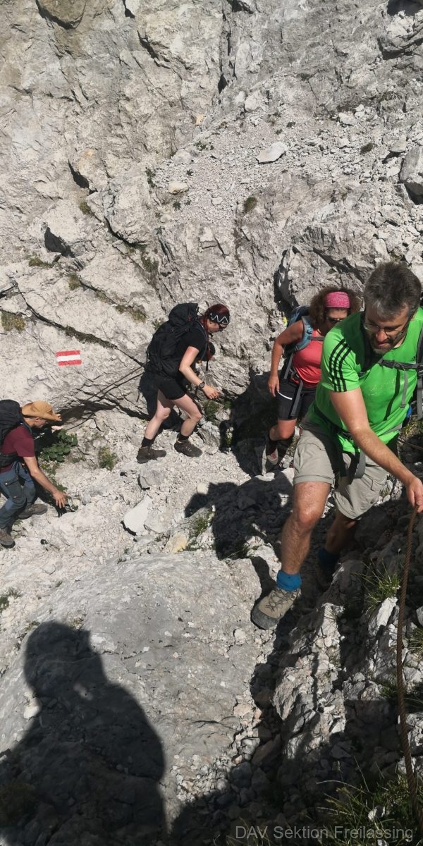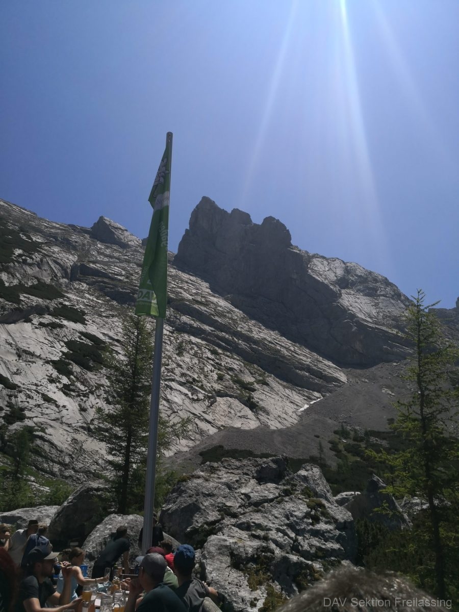 Von der Pfeifenmacherbrücke ging es auf die Hochalm, weiter über die Eisbodenscharte auf die Schärtenspitze. Von hier gingen wir den Normalweg, teils Seilversichert, zur Blaueishütte. Natürlich kam der Kuchen hier zu seinen Ehren.