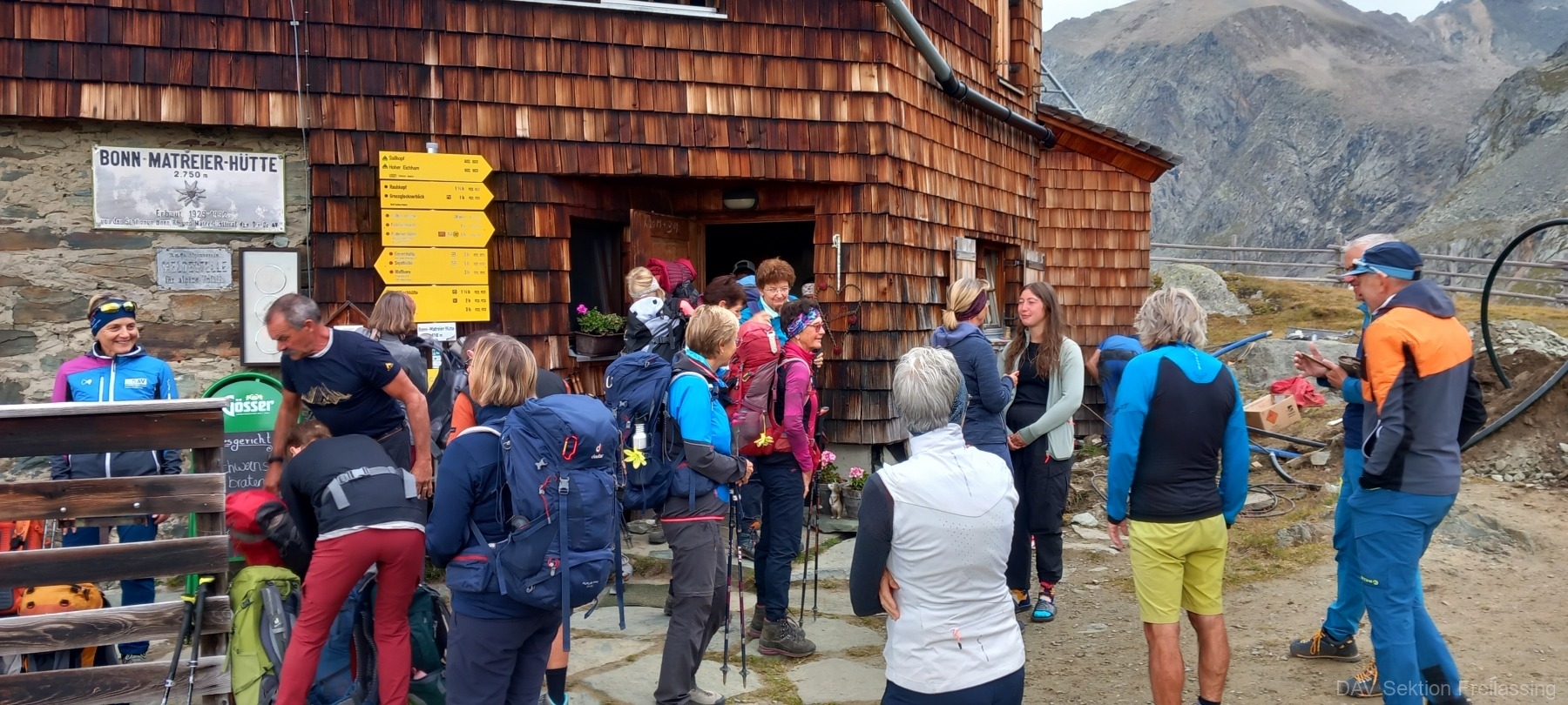 Ausgesprochen schöne Tourentage erlebten die Senioren beim Besuch der Bonn-Matreier-Hütte (2750 m) vom 25. – 27.08.2025. Der Aufstieg zur Hütte war verbunden mit dem Besuch bei Magdalena, einem Sektionsmitglied, das den Sommer über auf der Hütte arbeitet.