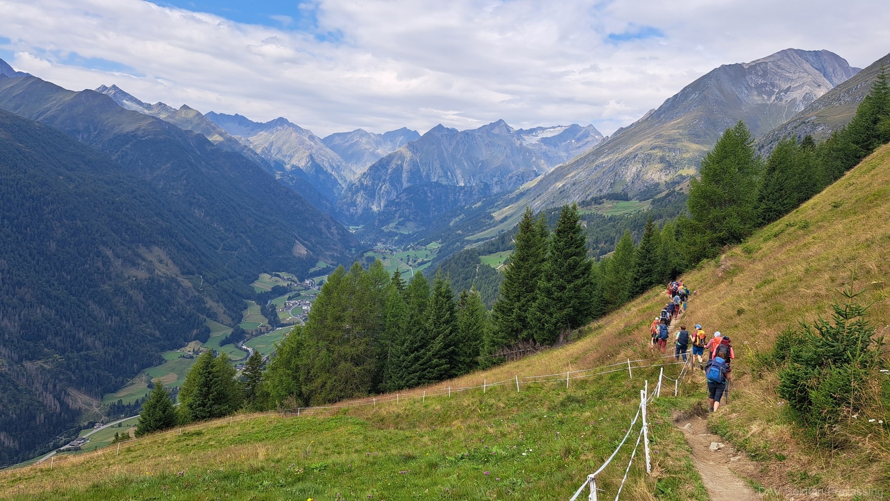 Nach der Anfahrt nach Prägraten begann der Aufstieg am Parkplatz Bodenalm auf 1700 m Höhe. Sehr steil und anstrengend war der erste Abschnitt zur Unterstoanalm, ehe der Venediger Höhenweg erreicht wurde. Das nächste Hindernis war der „Eselrugg“. Durch eine schmale Scharte und anschließend steilen Abstieg ging es hinunter ins Große Nilltal. Jetzt war es nicht mehr weit zur Hütte, die aussichtsreich auf einen Rücken zu sehen war. In 4 Stunden wurden die 1150 Höhenmeter überwunden.