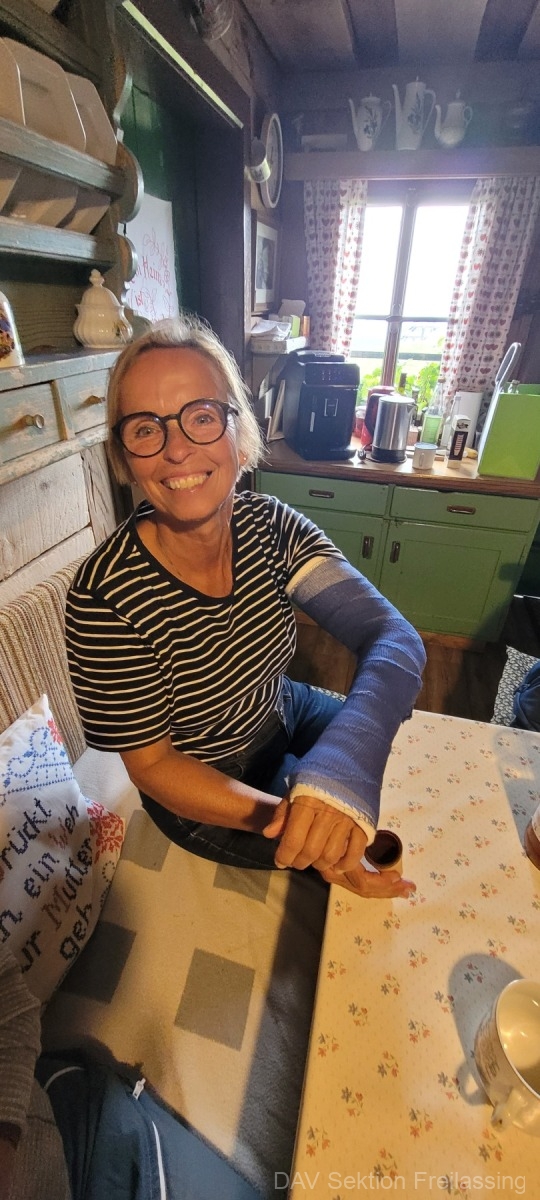 Ein Mitglied der Seniorengruppe tat auf einer der landwirtschaftlich genutzten Almen Dienst als Sennerin. Dort war die Gruppe zu Besuch angekündigt. Nach herzlicher Begrüßung, kurzer Inspektion der Hütte und gemütlicher Einkehr in einem nahegelegenen Gasthaus wanderten alle denselben Weg zurück ins Tal. Der ursprünglich geplante Badestopp musste wetterbedingt leider ausfallen…