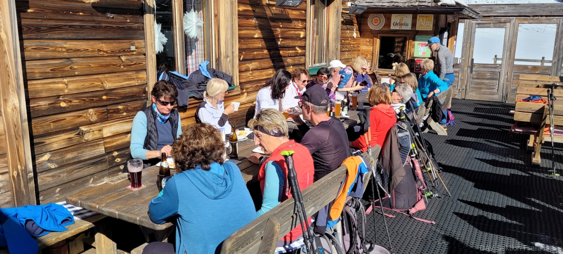 Ziel der letzten gemeinsamen Mittwochs-Wanderung der Senioren in der Osterhorngruppe war der Ochsenberg, der sich zwischen dem vorgelagerten Schwarzenberg, getrennt durch den Wiestalstausee und andererseits dem Eibleck befindet. Wir starteten pünktlich mit 29 Teilnehmern Richtung Gaissau bis kurz vor die Mautstelle Spielberg. Die ersten 400 m gingen wir entlang der Mautstraße bis zum Abzweig Ochsenberg/Eibleck. Der erste schattige Anstieg hatte uns schon eine Ahnung beschert, dass aufgrund des vielen Schnees wohl die Schneerosen uns heute nicht so freundlich gesinnt (oder gesonnen 🤭) sein werden. Vorbei am Abzweig zum Moser-Denkmal wanderten wir weiter entlang des Weges. Es wurde sonniger und die Aussicht rundum wurde immer gigantischer. Kurz vor Erreichen der Eibleckalm waren dann doch hin und wieder vereinzelt Schneerosen zu bewundern. Nach einigen Kurven führte uns der Weg, nun etwas steiler werdend, rechts hinauf zum Gipfel des Ochsenbergs auf 1.487m. Hier hatten wir ein geniales Rundum-Panorama. Anschließend gab es die ersehnte Gipfel-Brotzeit. Gemäß des ursprünglichen Plans, noch hinüber zum Eibleck zu gehen, traten wir lieber aufgrund des relativ stark verschneiten Grates, den Rückweg an. Über das Moser-Denkmal nahmen wir nun Kurs auf die Spielbergalm, die von dort aus mit 30 min ausgeschildert war. Es mussten noch einmal einige Reserven mobilisiert werden um den steilen, verschneiten Hang zu bewältigen. Schließlich kamen alle etwas durchweicht aber unversehrt auf der Spielbergalm an, wo wir bereits von der Chefin Maria erwartet wurden. Nach einer ausgiebigen Einkehr und dem Genuss des Panoramas machten wir uns zu Fuß auf den Heimweg über die Spielberg-Mautstraße zum Parkplatz hinunter. Es wurden insgesamt stolze 700 Höhenmeter zurückgelegt.