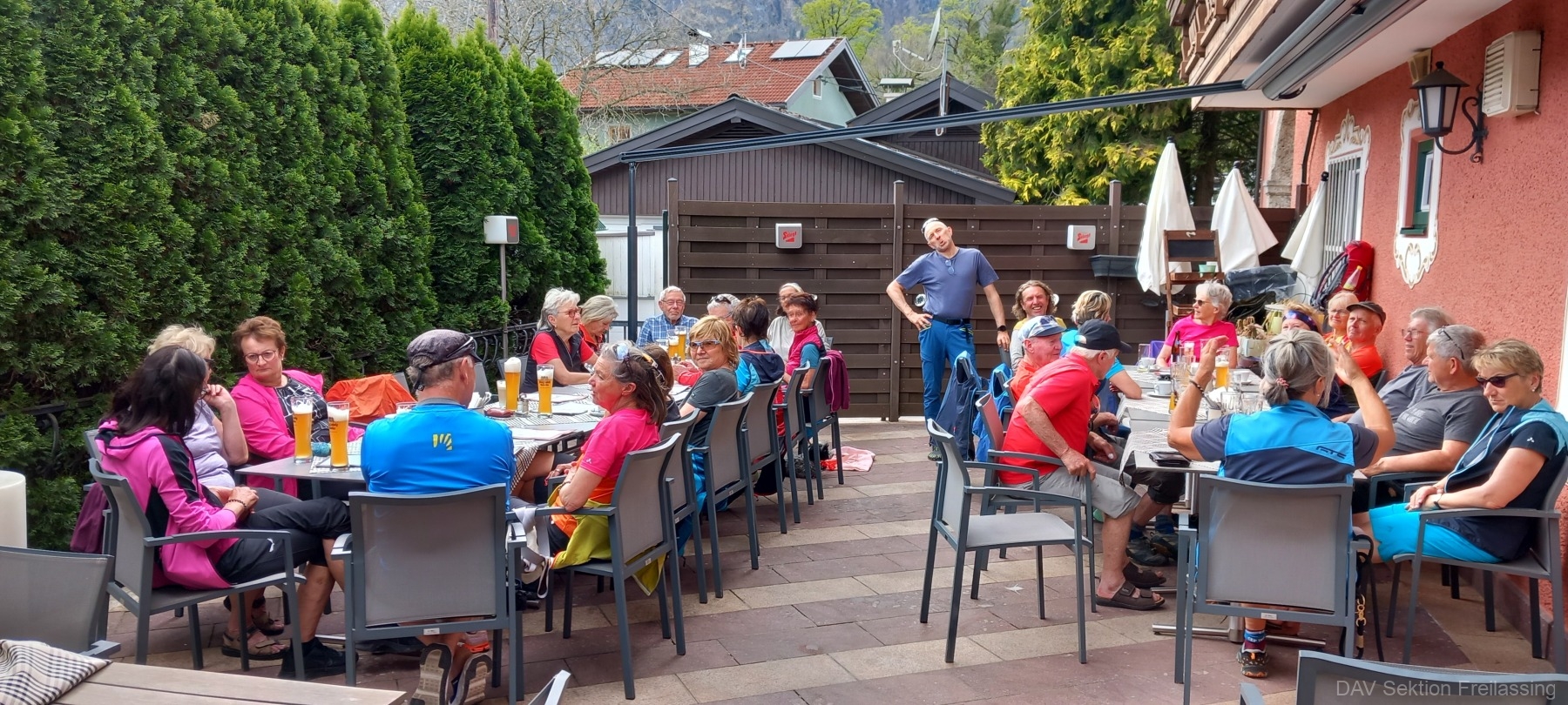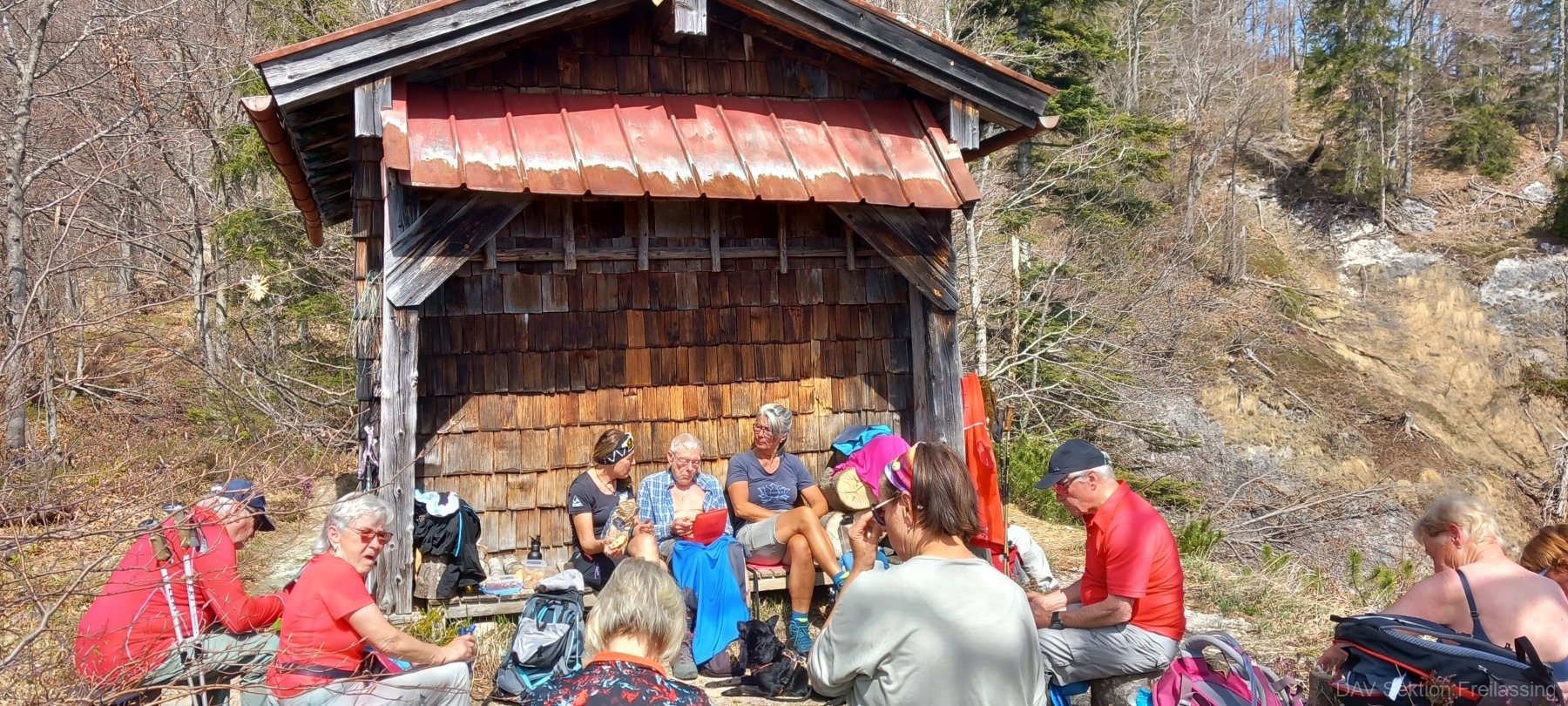 30 Teilnehmer starteten am Mittwoch, den 16.04.25 gemeinsam mit vier Tourenbegleitern am Wanderparkplatz an der Berchtesgadener Ache/Marktschellenberg. Das Ziel der zügigeren Gruppe mit 20 Senioren/innen war diesmal die Toni-Lenz-Hütte. Die 970Hm wurden in 2 1/2 Stunden bezwungen. Die ersten 400Hm führten auf der doch etwas steileren Fortstraße bergauf, jedoch stets die Untersbergsüdwände im Blick und entlang dem Bachgraben. Weiter ging es dann auf dem Wanderweg, entlang dem Lochgraben. Es waren 630 Hm geschafft und oberhalb rechts gelegen war die Mitterkaser-Diensthütte, das Ziel der etwas gemütlicheren Gruppe (14 TN). Die Mulden und Flächen unterhalb der Toni-Lenz-Hütte waren bis vor wenigen Tagen noch mit ausreichend Schnee bedeckt. Am Mittwoch blühten bereits wieder die Schneerosen. Beide Gruppen erreichten wohlbehalten ihre Ziele und konnten nach einer ausgiebigen Brotzeit, die sogar noch mit Speck, Schüttelbrot und etwas Flüssigem bereichert wurde, wieder den Abstieg antreten. Kurz vor dem Parkplatz trafen alle 34 Senioren dank des guten Timings der Begleiter wieder zusammen. Aufgrund der starken Föhnlage war es sonnig und sehr warm. Den Durst und Hunger konnten wir im Gasthaus Franz-von-Assisi in Anif stillen (endlich ein Wirtshaus, das am Mittwoch geöffnet hat).