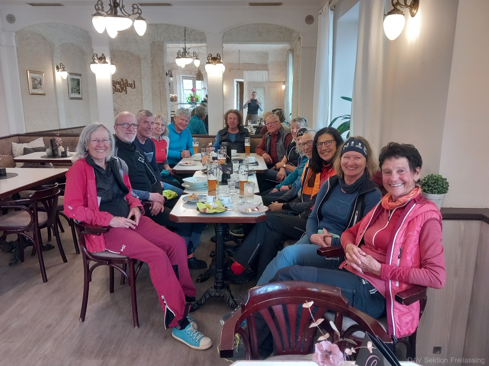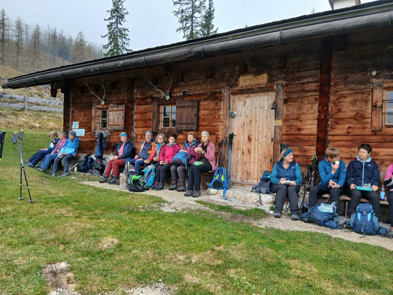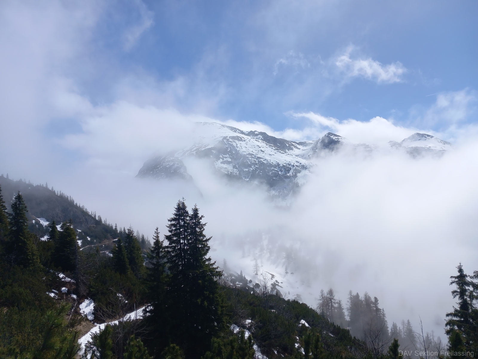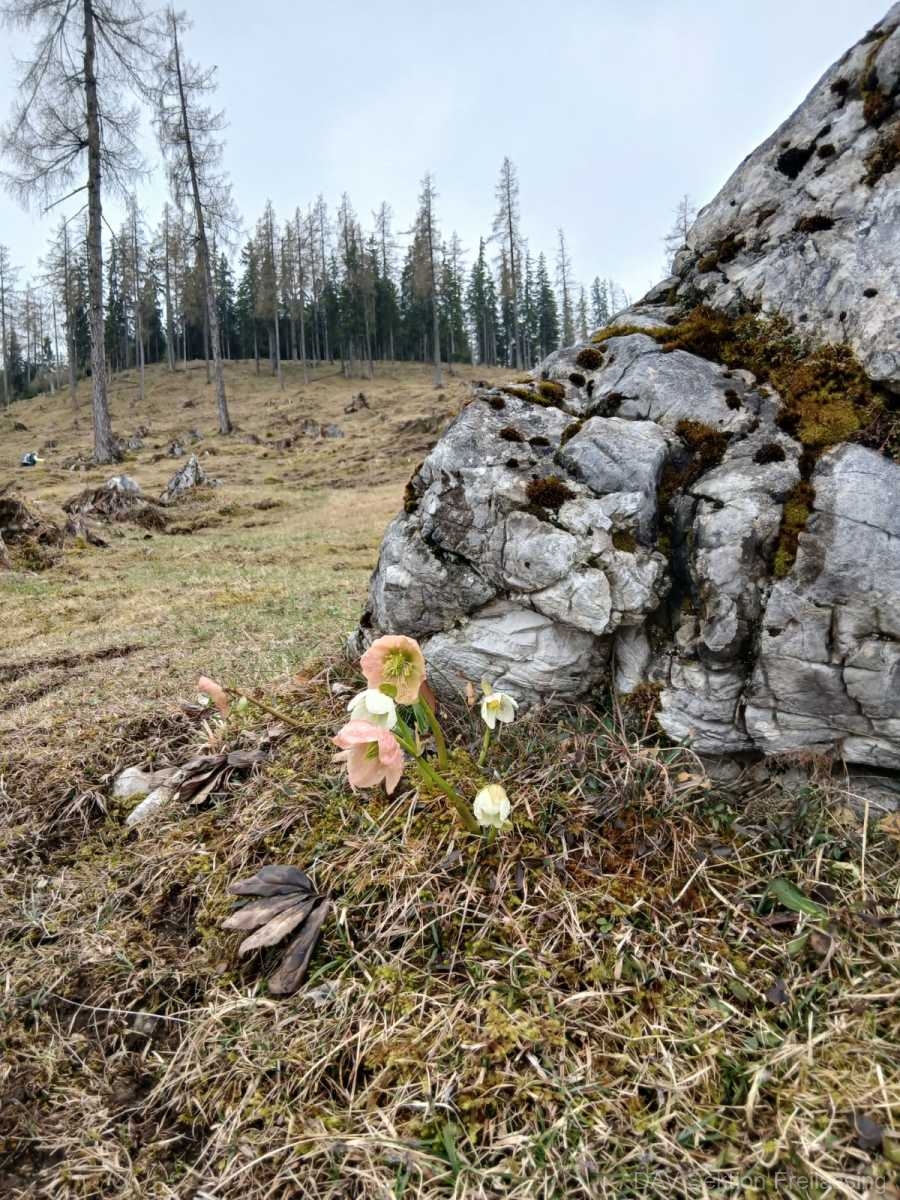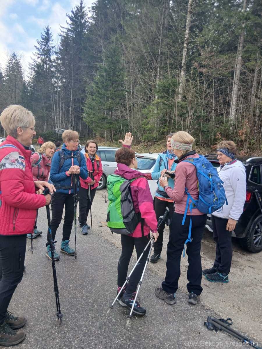 Das Wetter meinte es gut mit den fast 20 wandernden SeniorInnen des Freilassinger Alpenvereins. Es blieb den ganzen Tag trocken. Vom Parkplatz Hammerstiel ging es los zur Stubnalm. Die Schneerosen waren vom zuletzt gefallenen Schnee erstaunlich gut konserviert und noch zahlreich zu sehen. Während der Rast bei der Almhütte konnten sie den Ausblick ins Tal genießen. Die umliegenden Gipel wurden jedoch von der tiefhängenden Wolkendecke versteckt. Zurück ging es über Wimbachbrücke und Resten in einer