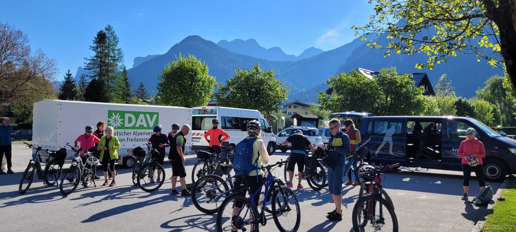 Am Mittwoch, den 30.4.25 nahmen sich 22 Senioren vor, bei idealem Radlwetter, die Steinbergrunde zu fahren. Es wurde bereits um 8:00 Uhr am Gelände des TSV Freilassing mit 3 vollbepackten Fahrzeugen gestartet. Der neu beschaffte Radlanhänger kam erstmals zum produktiven Einsatz. Es ging zunächst ins Zentrum nach Lofer, wo die 22 Räder wieder entladen wurden. Das ging schneller als gedacht. Die ersten Kilometer wurden entlang der Bundesstraße geradelt. An einem Steinbruch wurde die erste kleine Trinkpause eingelegt. Anschließend wurde weiter in Richtung Saalfelden gefahren. Vor dem Ort ging es dann rechts weiter Richtung Leogang, immer die beeindruckende Bergwelt vor Augen. Die Leoganger Steinberge mit dem beeindruckenden Birnhorn begleiteten uns eine ganze Zeitlang; das Steinerne Meer hatten wir im Rücken. Am Griessener Moor wurde dann eine längere Pause eingelegt. Wir überschritten nun die Grenze zum Bundesland Tirol und kehrten schließlich im Seestüberl am Pillersee ein. Nach intensivem Genuss von Würstln, Brezen und der gesamten Getränkepalette, ging es dann nach wenigen Kilometern am Ende des Sees weiter zur Teufelsklamm. Nach einem ziemlich steilen Anstieg war die kurze aber sehr blumenreiche Klamm recht schnell erreicht. Nach ausgiebigem Fotoshooting wurde der Rückweg angetreten in Richtung Lofer. Es ging dann auf abwechslungsreichen Wegen über Schotterpfade, Teerstrassen und kurvenreichen Waldpassagen weiter. Die aufmerksamen Blicke des Viehs begleiteten uns entlang der links aufragenden Steinplatte. Zurück in Lofer wurden die Räder wieder durch viele helfende Hände in Rekordzeit verstaut und vertäut. Anschließend setzte sich der kleine Konvoi wieder in Richtung Freilassing in Bewegung. Insgesamt wurden,  je nach Startpunkt, knapp 70 km geradelt.