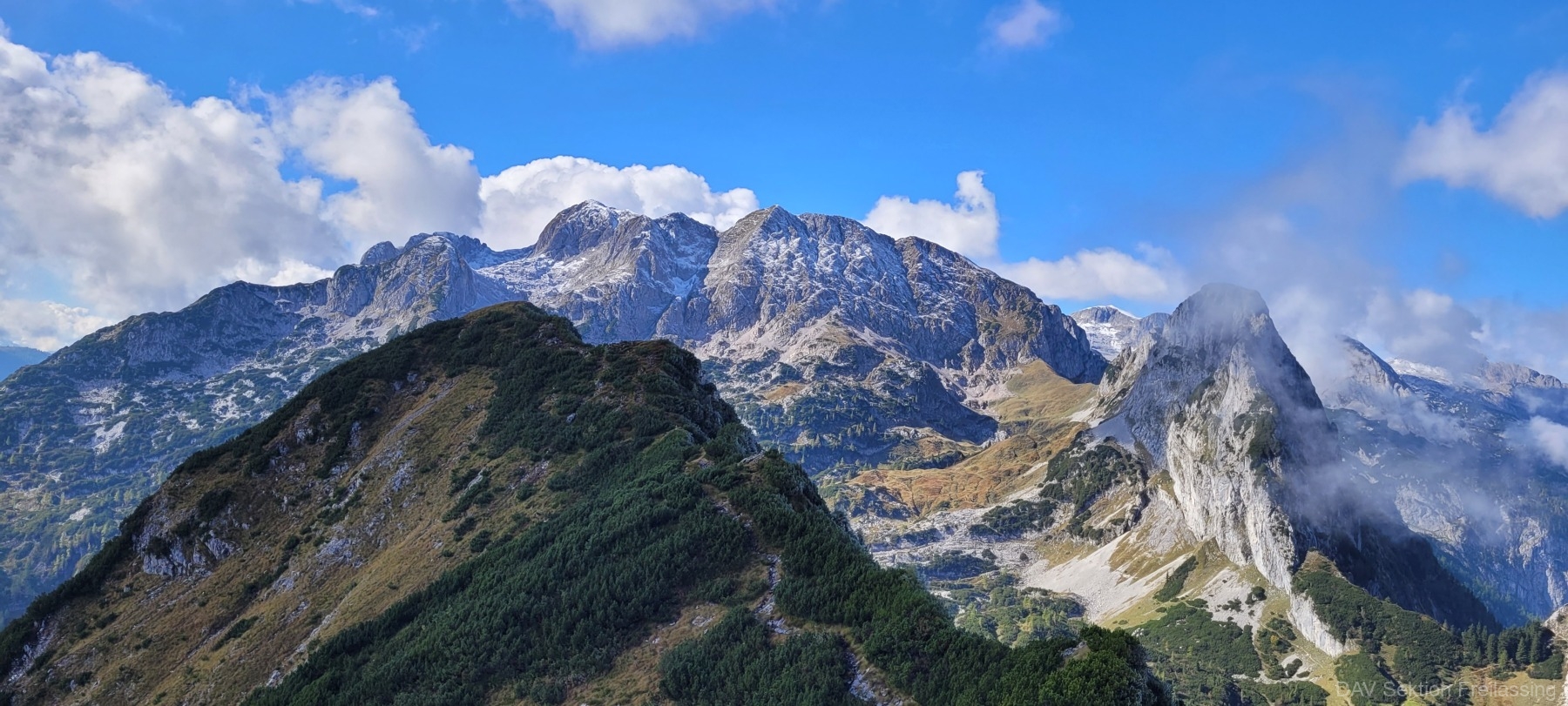Das Wetter war etwas durchwachsen und recht frisch; die Sicht hätte besser sein können. Sonne, Nebel, Wolken und ein kurzer, sanfter Schneefall (ehrlich !) wechselten sich ständig ab. Am Tag davor hatte es stark geregnet; dadurch waren zumindest die Steige teilweise sehr rutschig. Es gab dennoch keine Verluste 😉