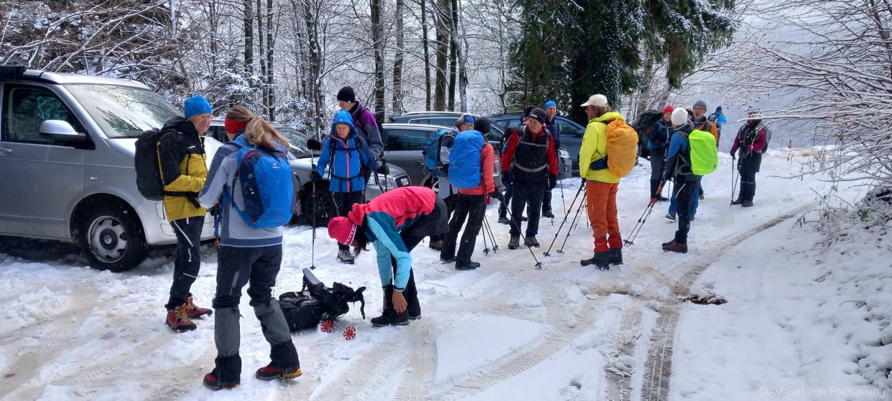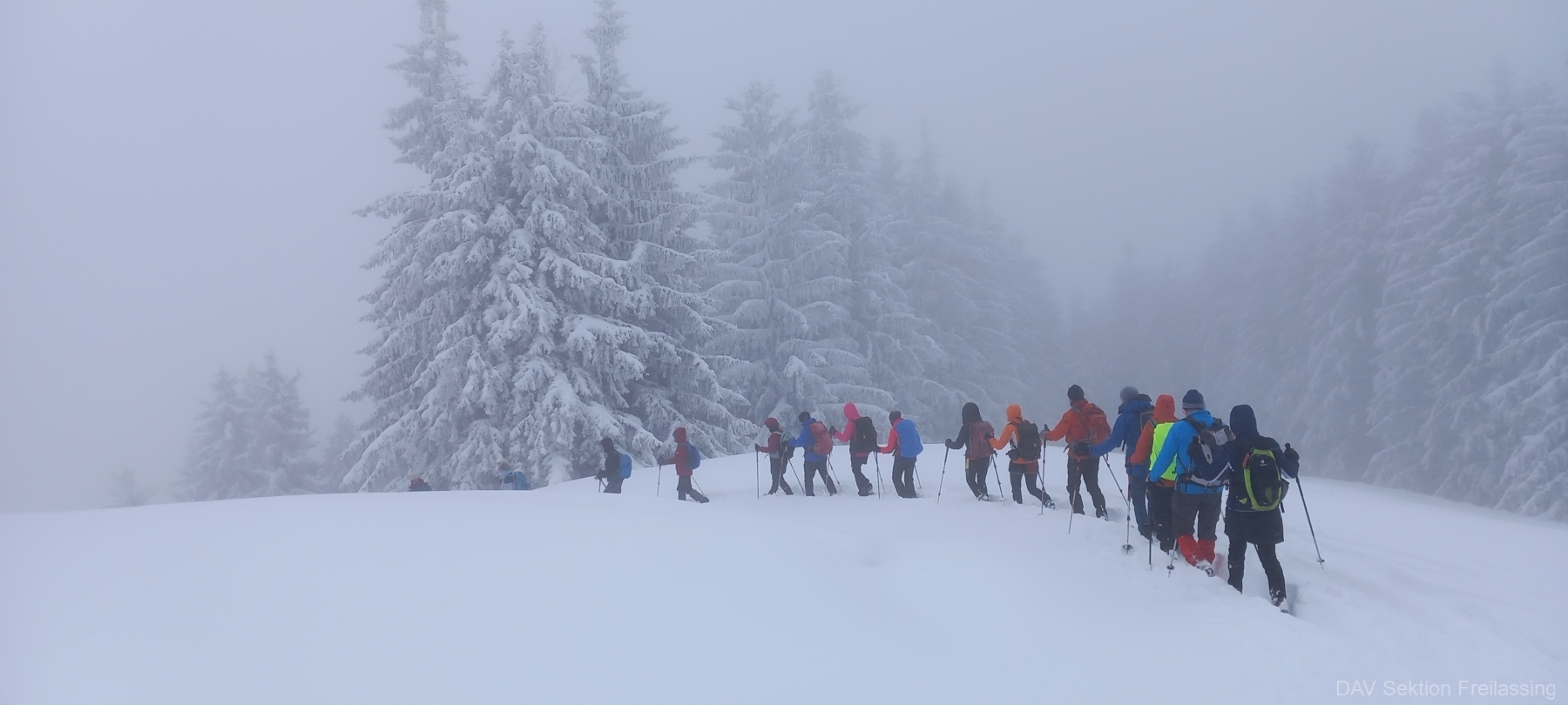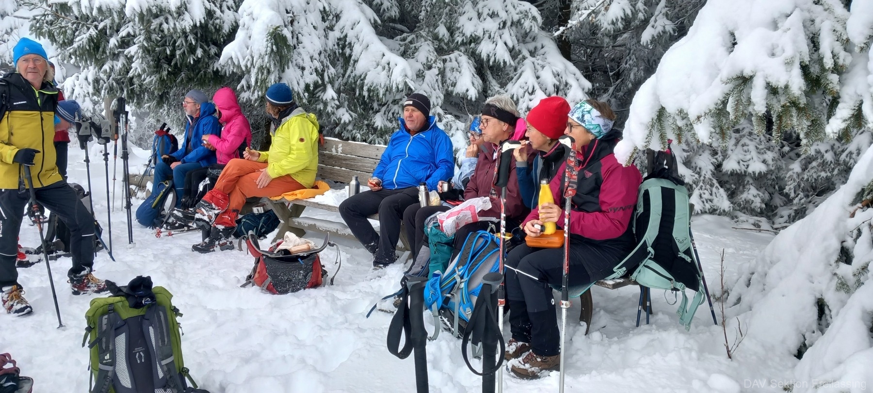 Am 26.11.2025 war es wieder soweit. Der winterliche Wetterbericht machte die Auswahl der Seniorentour einfach. 19 Teilnehmer nahmen die Einladung an und starteten am Wanderparkplatz in Neuhaus. Auf leicht verschneiten Wegen ging es über die „Schneid“ dem Gipfel entgegen. Mit zunehmender Höhe wuchs auch die Schneedecke. Zum Schluss musste durch knietiefen Schnee gespurt werden. Nach 2 Stunden waren die 570 Höhenmeter überwunden und das Gipfelkreuz war erreicht. Die Gipfelrast war nur sehr kurz. Es lockte die Einkehr im Winterraum der Stoißer Alm, wo wir schon erwartet wurden. Bei guter Verpflegung und wärmenden Glühwein herrschte eine ausgelassene Stimmung. Gut erholt ging es wieder hinaus in die Kälte und auf der Forststraße in 1 ½ Stunden hinunter zum Parkplatz.