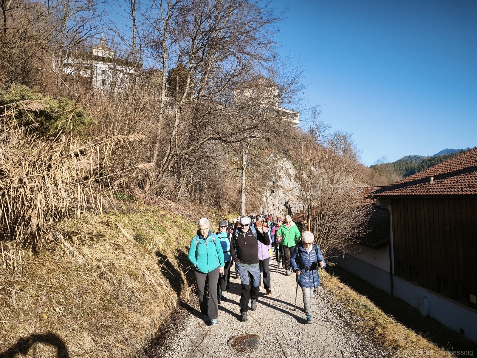 Am 10.12.2025 unternahmen 38 Teilnehmer der DAV-Seniorengruppe eine entspannte Wanderung in Berchtesgaden. Gestartet wurde am Salinenparkplatz am Bahnhof. Es ging zunächst einige wenige Höhenmeter Richtung Ortszentrum und durch den Luitpoldpark. Das Wetter bot ein einzigartiges Panorama der Berchtesgadener Bergwelt. Nach kurzer Zeit erreichten wir die sehenswerte Kapelle auf dem Kalvarienberg. Dort hatten wir einen genialen Blick auf Berchtesgaden und es boten sich einige Schnappschüsse an. Anschließend wanderten wir entlang des Laternenweges in Richtung Lockstein, vorbei an der Kirchleitnkapelle bis zur Lockstein -Aussicht. Hier machten wir ausgiebig Rast. Es wurden neben dem Verzehr der eigenen Brotzeit auch allerlei Platzerl und Süßigkeiten gereicht. Daneben gab es auch einen Anlass zum Genuss von erlesenen Spirituosen.